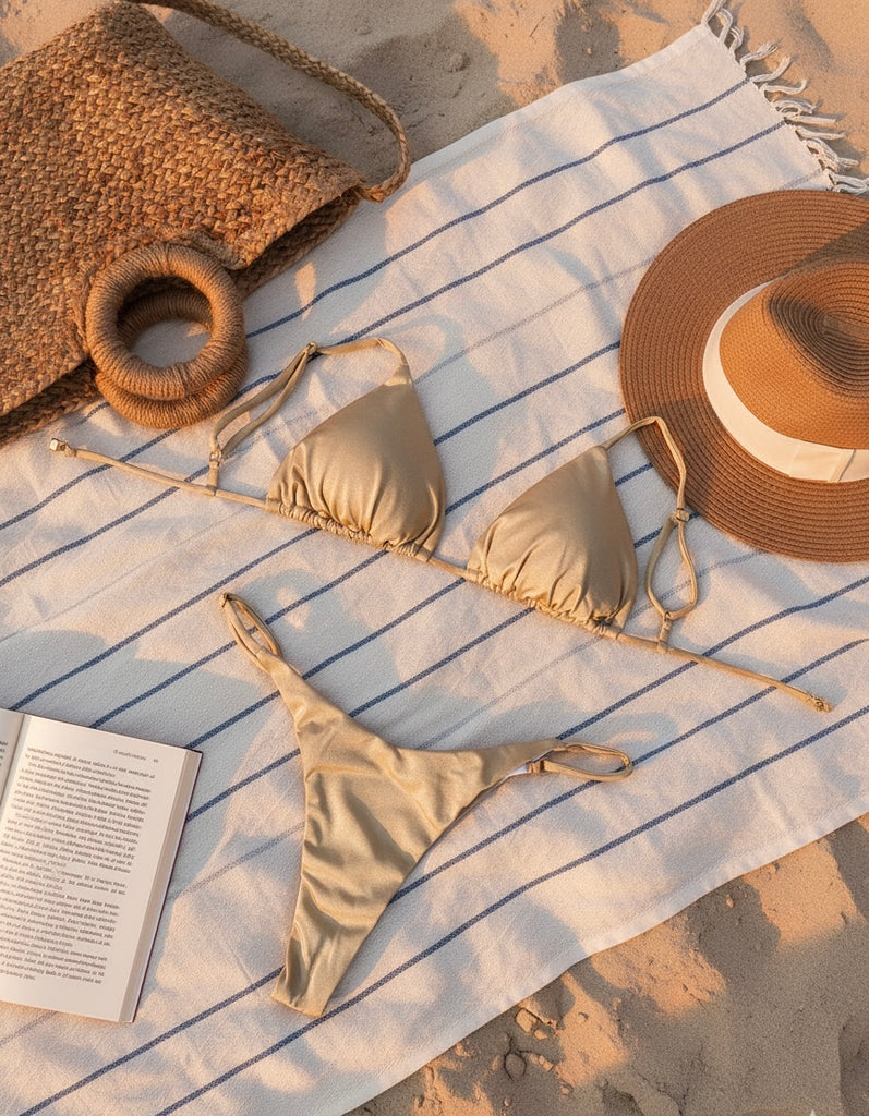 Nuestro best seller. El bikini de lujo Anastasia, elaborado artesanalmente en Colombia, eleva tu estilo con detalles dorados, confección impecable y una silueta que realza tu figura con sofisticación.