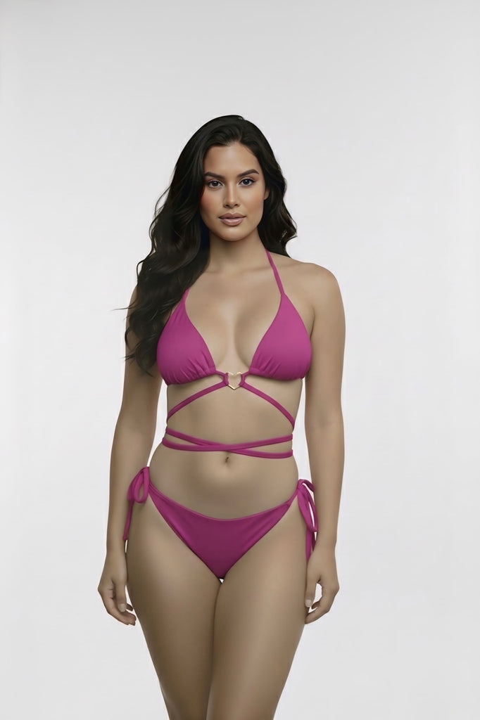 Top: Nuestro icónico top triangular es ajustable para una cobertura deseada, cargaderas ajustables, con forro en color solido, anudado en cuello y espalda, nuestro Accesorio en forma de corazón dorado tiene baño de ORO de 24K para garantizar que no se te deteriora con el uso en agua  salada, con almohadillas removibles.