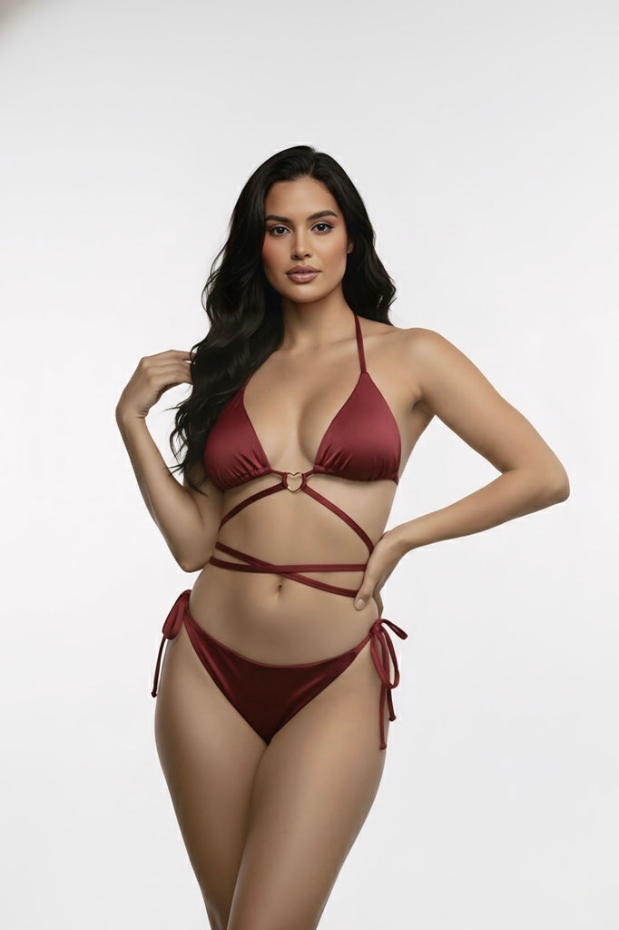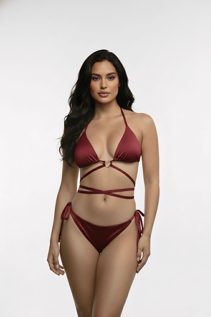 Top: Nuestro icónico top triangular es ajustable para una cobertura deseada, cargaderas ajustables, con forro en color solido, anudado en cuello y espalda, nuestro Accesorio en forma de corazón dorado tiene baño de ORO de 24K para garantizar que no se te deteriora con el uso en agua  salada, con almohadillas removibles.