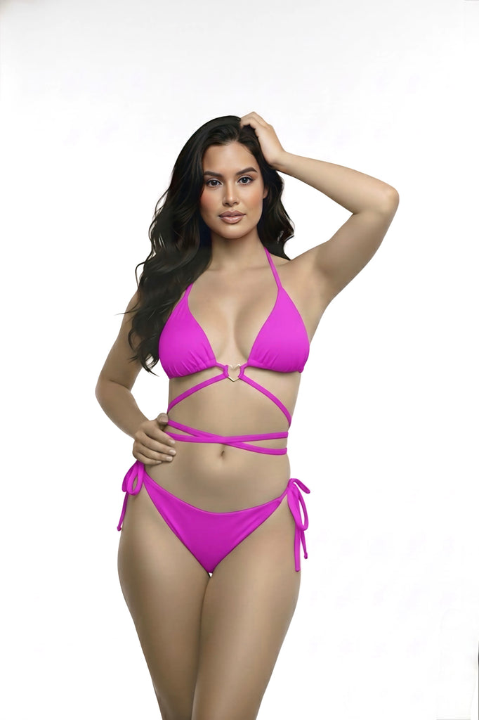 Top: Nuestro icónico top triangular es ajustable para una cobertura deseada, estampado edición especial, cargaderas ajustables, con forro en color solido, anudado en cuello y espalda, con Accesorio con baño de ORO de 24K en forma de corazón dorado, con almohadillas removibles.