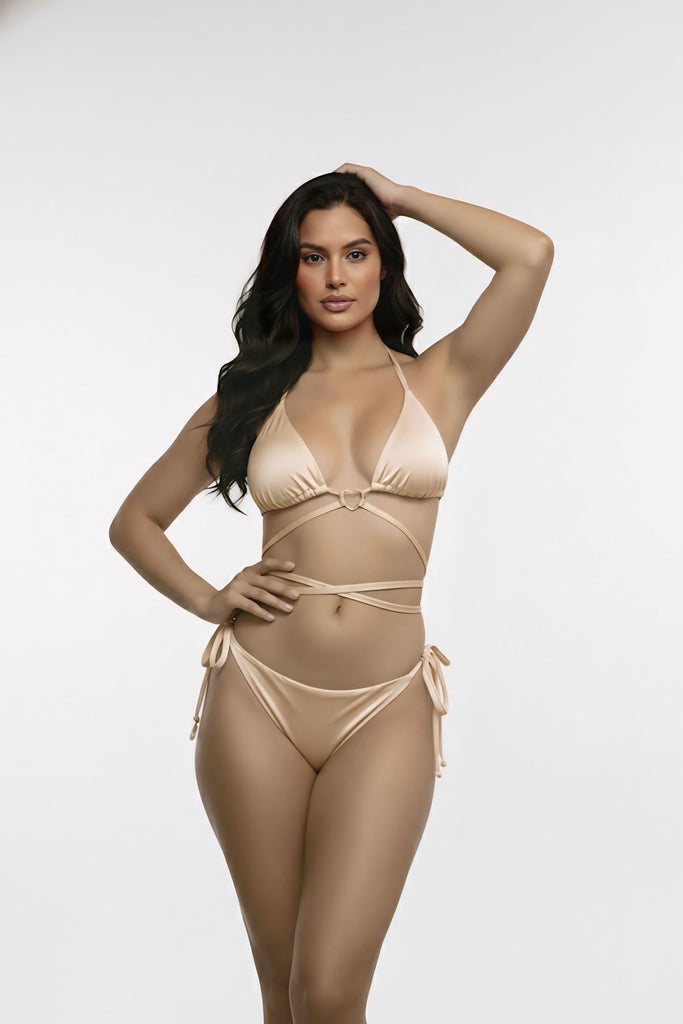Top: Nuestro icónico top triangular es ajustable para una cobertura deseada, cargaderas ajustables, con forro en color solido, anudado en cuello y espalda, nuestro Accesorio en forma de corazón dorado tiene baño de ORO de 24K para garantizar que no se te deteriora con el uso en agua  salada, con almohadillas removibles.