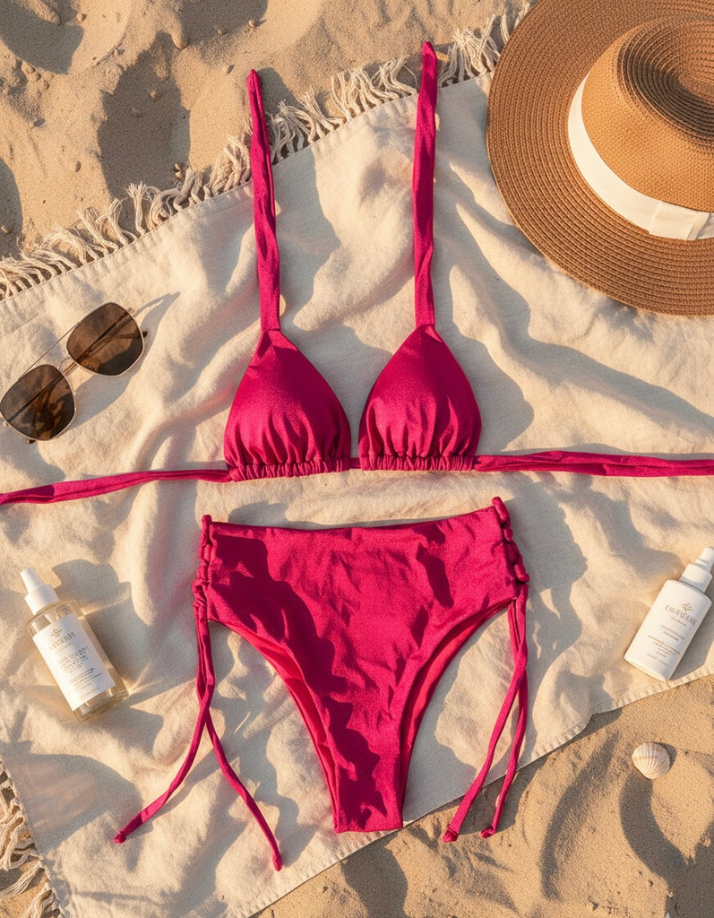 Nuevo bikini Solei irradia feminidad y fuerza con su tono vibrante y diseño que celebra la luz del verano. Elaborado artesanalmente en Colombia, combina elegancia y confort en una silueta que realza tu figura con sutileza y seguridad.